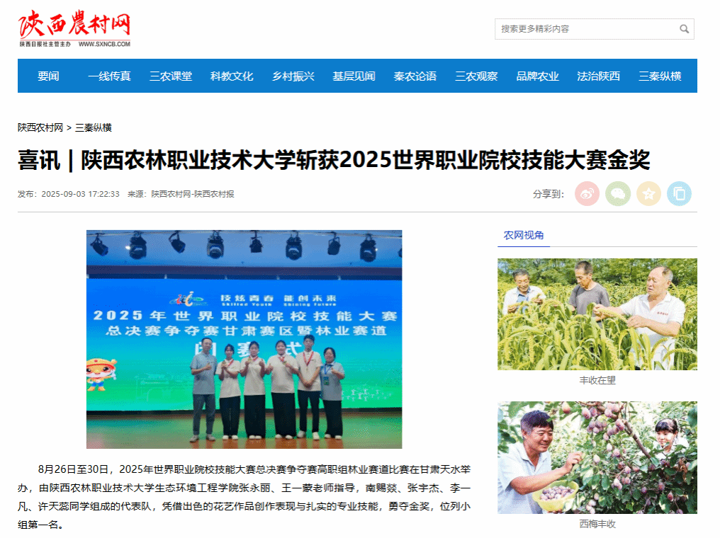 8月26日至30日,2025年世界职业院校技能大赛总决赛争夺赛高职组林业赛道比赛在甘肃天水举办,由350vip浦京集团官网生态环境工程学院张永丽、王一蒙老师指导,南赐燚、张宇杰、李一凡、许天蕊同学组成的代表队,凭借出色的花艺作品创作表现与扎实的专业技能,勇夺金奖,位列小组第一名。