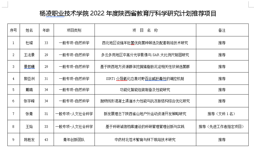 根据《陕西省教育厅办公室关于申报2022年度科研计划项目的通知》(陕教技办[2022]6号)有关规定,经过创新团队和项目负责人申请,学校学术委员会专家评审,现对浦京申报的2022年度陕西省教育厅科研计划推荐项目进行公示。公示期间,广大师生如有意见,可以通过电话、信函、邮件等方式,及时向学校科技与教育研究处、学校纪委反应监督。