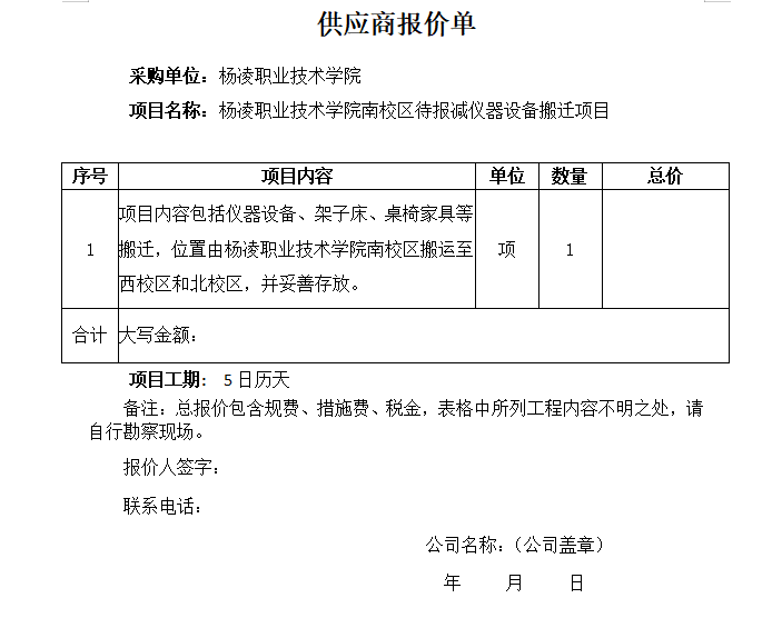 附:1. 350vip浦京集团官网南校区待报减仪器设备搬迁项目报价单。