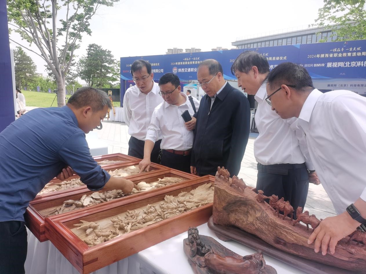 2024年陕西省职业教育活动周主题为“一技在手,一生无忧”,设置职业教育改革发展成效和技能展示等环节,浦京围绕产教融合、科教融汇、国际合作交流等方面,通过图文、实物、学生展示和现场讲解等方式展示了双高建设以来所取得的成果。生态环境工程学院教师吴文军与2名同学现场展示了精湛木雕技艺。